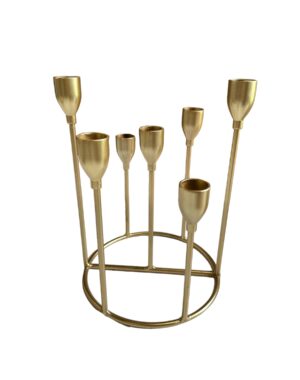 ŚWIECZNIK ZŁOTY 7 RAMIENNY NA ŚWIECE STOŁOWE